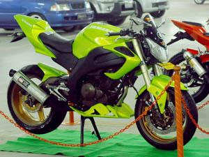 Indian motorcycle manufacturer, TVS shows the actual look of the latest motor sport that they will soon be launched this year, TVS Apache RTR 180. Motors shown in this arena PRJ appear stocky body with firm strokes that are shown on the arena mengesankan.Motor Jakarta Fair (PRJ) is appearing stocky body with firm strokes that mengesankan.Roda front discs. The plan of PT TVS Motor Company Indonesia (TMCI), which became TVS motor manufacturers in Indonesia will soon enter their latest variant of this motor sport in the second half of 2010 was to accompany the TVS Apache RTR 160 which have previously been present in pasaran.Dilihat from the looks, the motor holding 180 cc engine looks very tough with the extra body guard that makes your legs appear more dinamis.Terlebih TVS Apache 180 rim is also supported by the crossbar models equipped with disc disc on the front and rear wheels which is claimed to be able to stop the vehicle more safely . As for the affairs of the kitchen pacunya, one of the largest manufacturers in India are pinning the net capacity of 177.4 cc engine with EFI technology is claimed to be more powerful